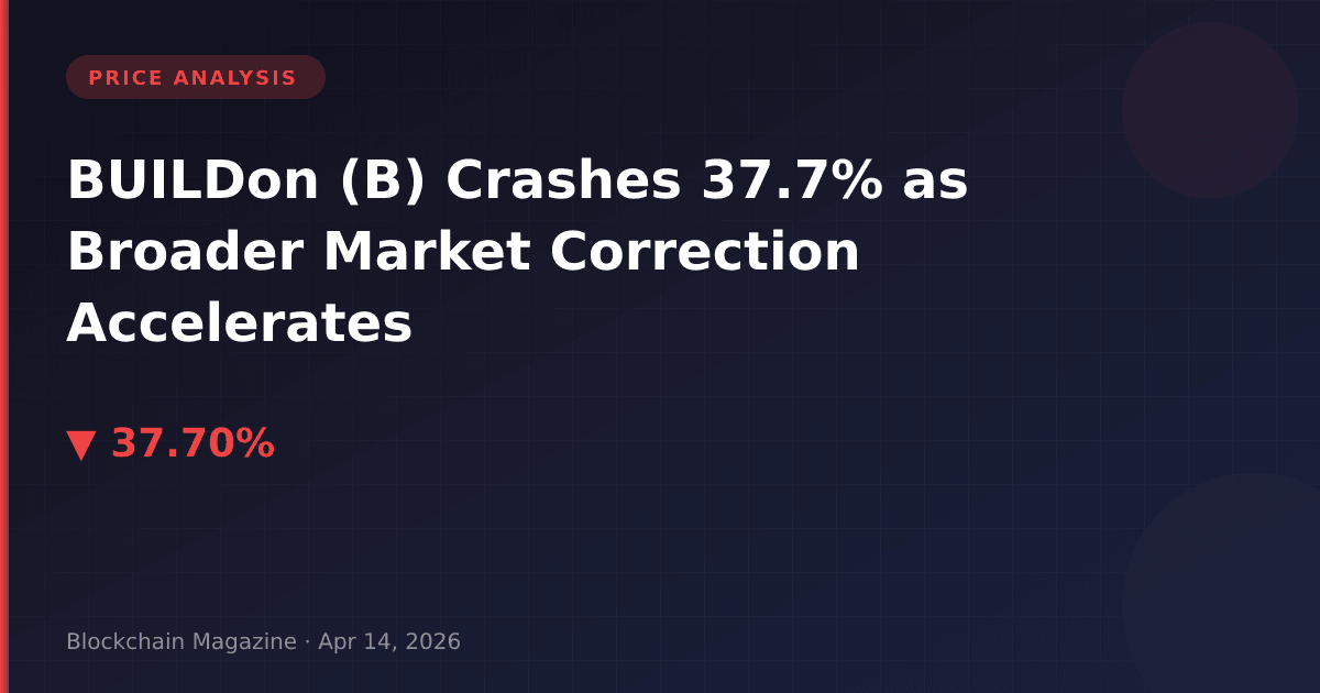 BUILDon (B) has suffered one of the steepest declines among mid-cap tokens in the past 24 hours, plummeting 37.7% to $0.113 as of April 14, 2026. The dramatic sell-off erased $68.3 million from the project’s market capitalization, bringing it down to $113.28 million and pushing it to rank #249 by market cap. What our analysis finds most concerning isn’t just the magnitude of the decline, but the sustained pressure across multiple timeframes—with 7-day losses of 36.7% and 30-day losses of 37.5% painting a picture of systematic selling rather than isolated volatility.