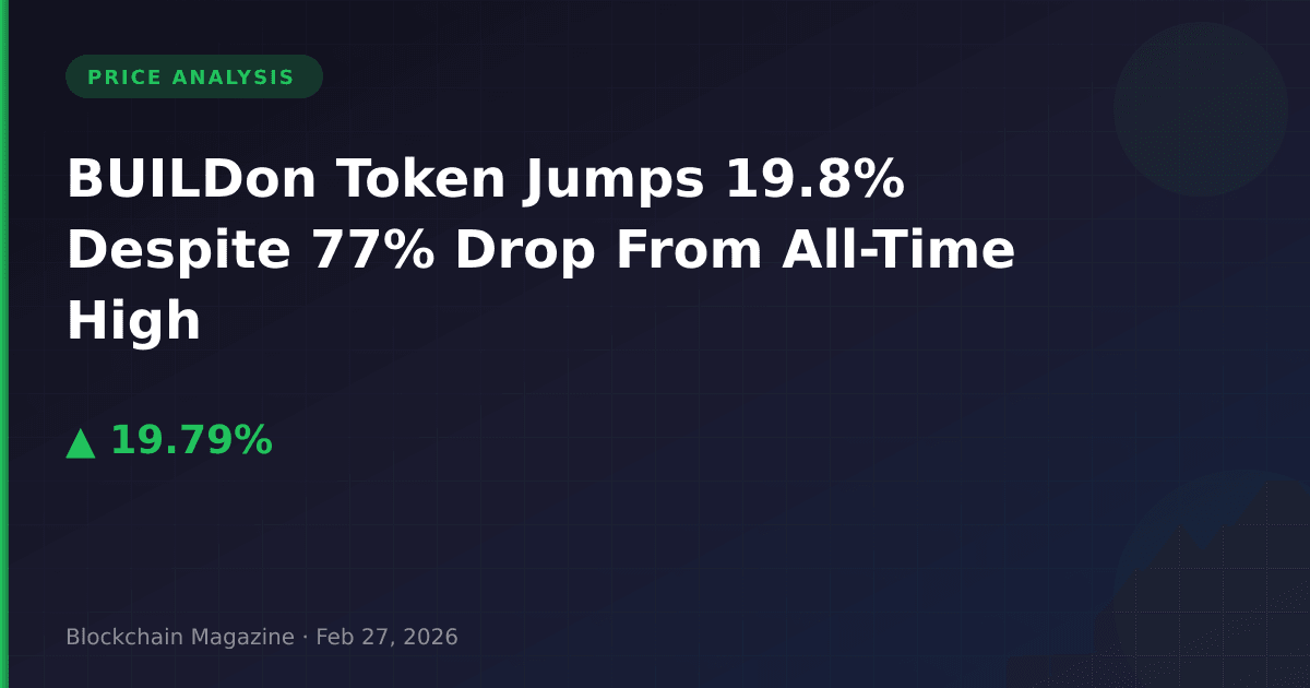 BUILDon (B) has emerged as one of the day’s top performers, registering a 19.8% price increase to $0.166641 as of February 27, 2026. This surge added $27.6 million to its market capitalization in just 24 hours, bringing its total valuation to $166.7 million. However, beneath this impressive single-day performance lies a more complex narrative that warrants deeper examination.