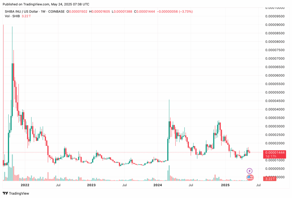 In 2021, SHIB skyrocketed, gaining over 40,000,000% at its peak, driven by retail enthusiasm and endorsements from figures like Elon Musk. As of May 2025, SHIB ranks among the top 15 cryptocurrencies by market cap, with a value of approximately $0.000042, reflecting a 0.89% decrease in the past week alone. But can this momentum overturn and then carry it to $1?