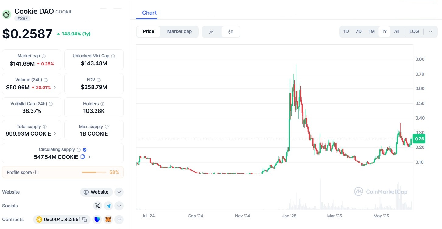 - Partnerships and Utility: The partnership with Cookie3, which builds a MarketingFi ecosystem, adds utility to the COOKIE token, used for accessing gated features on cookie.fun and participating in governance.