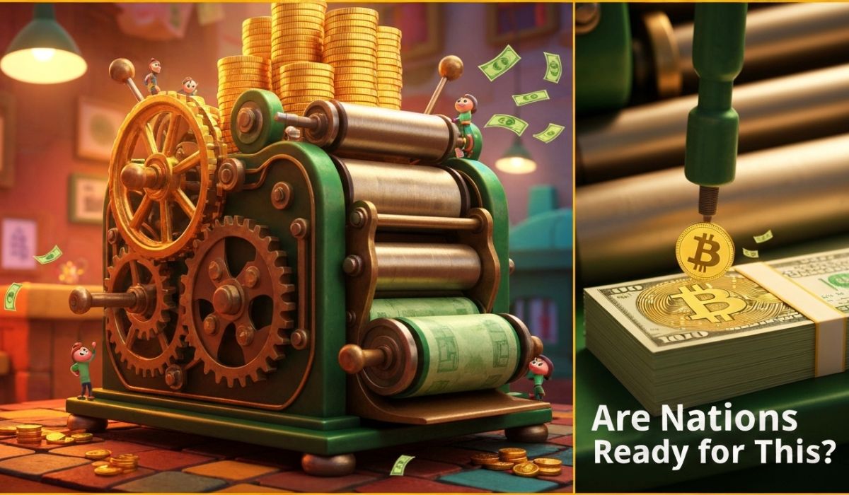 | Nations print money to buy BTC | Bitcoin demand rises sharply; price could reach $200K+ | Fiat currencies weaken due to inflation | Risk of economic instability |