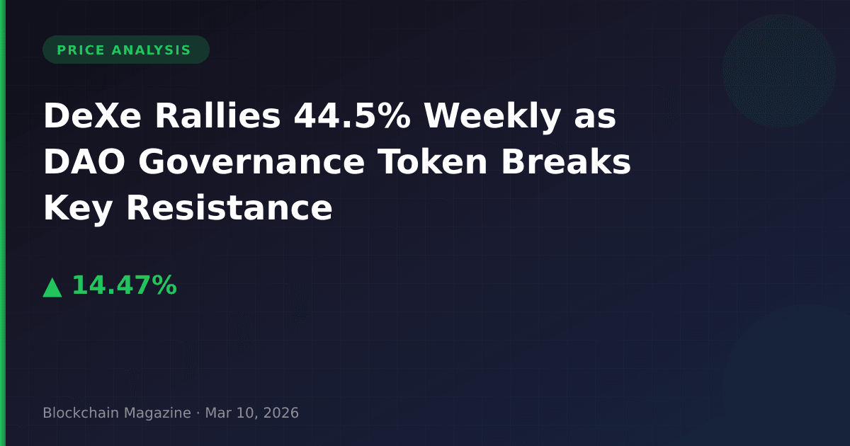 DeXe (DEXE) registered a 14.5% price increase over the past 24 hours, reaching $5.05 on March 10, 2026, as the decentralized autonomous organization (DAO) governance token continues a remarkable 44.5% weekly rally. What makes this movement particularly noteworthy isn’t just the percentage gain—it’s the 139% monthly appreciation combined with a surge in trading volume to $22.7 million, representing approximately 9.6% of market capitalization turnover in a single day.