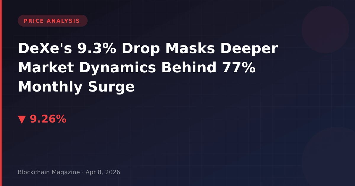 While DeXe’s 9.3% single-day decline to $8.02 captured headlines on April 8, 2026, the narrative shifts dramatically when examining the broader context: the DAO governance token has surged 77% over the past 30 days, positioning today’s pullback as a technical correction rather than a fundamental shift. Our analysis of on-chain metrics and market structure reveals this drawdown as a predictable consequence of an overheated short-term rally, not a bearish reversal.