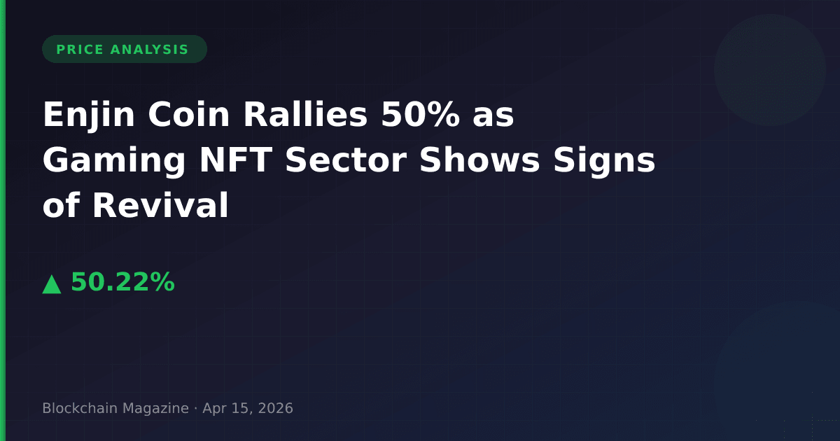 Enjin Coin (ENJ) has posted a remarkable 50.2% gain in the past 24 hours, climbing from $0.062 to $0.093 as of April 15, 2026. What makes this move particularly noteworthy isn’t just the price action—it’s the accompanying 3.9x surge in trading volume to $706 million, representing nearly four times ENJ’s entire market capitalization of $181 million.