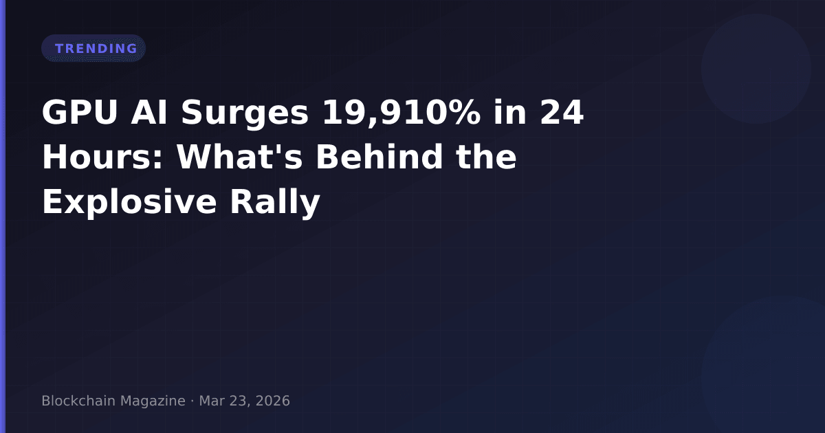 In what stands as one of the most extreme price movements we've observed in the 2026 crypto market, GPU AI (GPUAI) has surged 19,910.84% against the US dollar in the past 24 hours, reaching a price of $0.0295 per token. This five-figure percentage gain represents a level of volatility that deserves careful examination beyond the headline numbers.