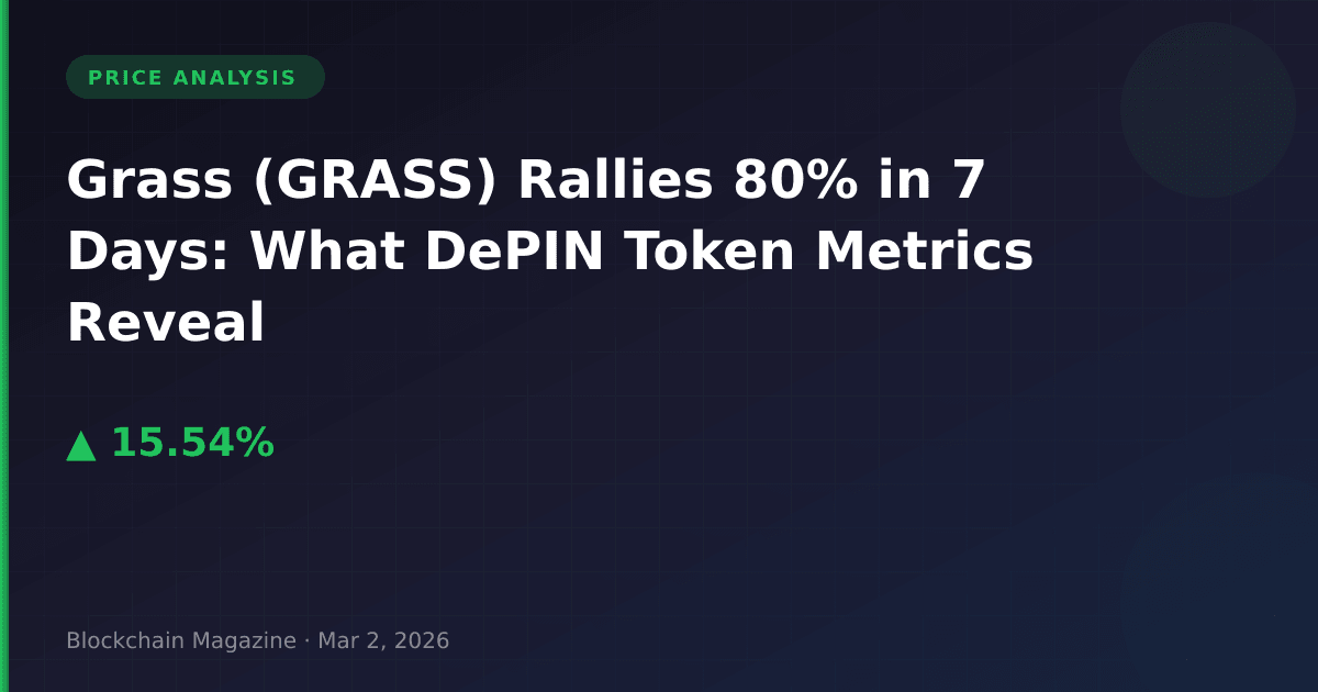 Grass (GRASS), a decentralized physical infrastructure network (DePIN) token, has captured market attention with a 15.5% surge in the past 24 hours, culminating a remarkable 80.8% weekly rally that has pushed the project to rank #193 by market capitalization. While crypto markets remain range-bound in early March 2026, this bandwidth-sharing protocol has emerged as an outlier, prompting us to examine what on-chain metrics and market structure patterns reveal about sustainability.