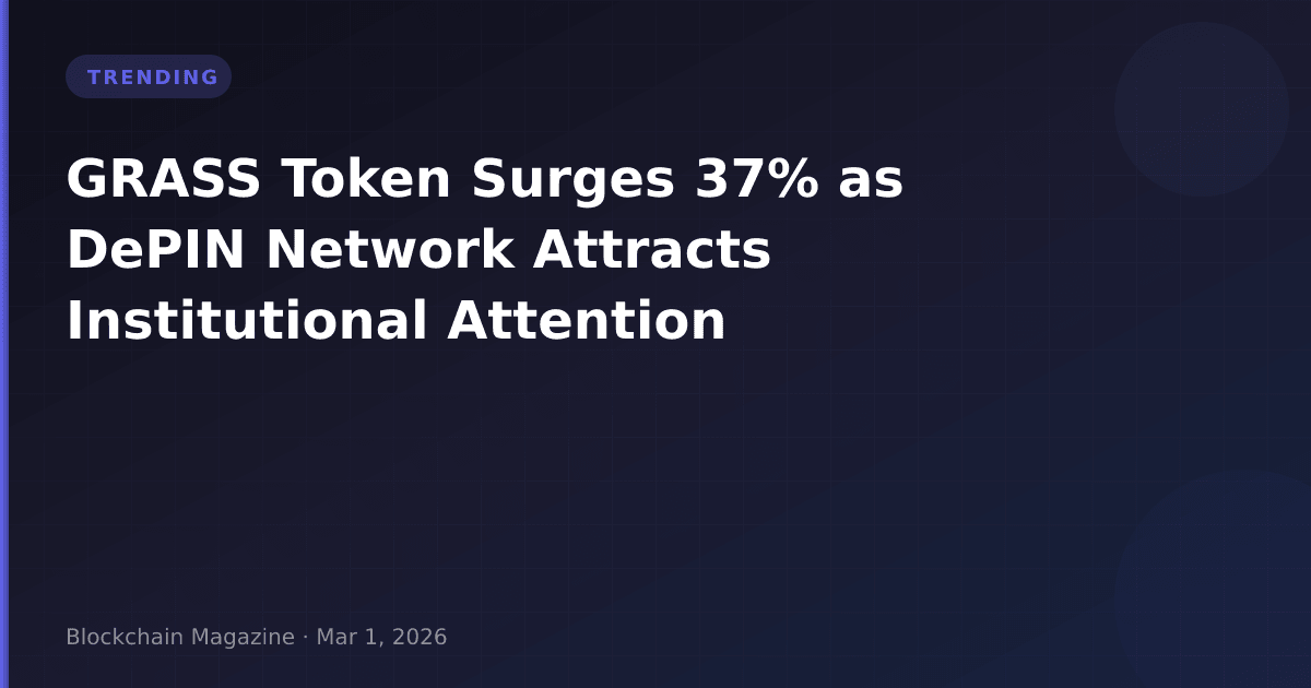Grass (GRASS) has emerged as one of the cryptocurrency market’s strongest performers on March 1, 2026, posting a 37% price increase to $0.2707 while the broader market shows moderate gains. This performance stands in stark contrast to Bitcoin’s 5% increase and Ethereum’s 3% gain over the same period, suggesting concentrated buying pressure specific to this decentralized physical infrastructure network (DePIN) token.