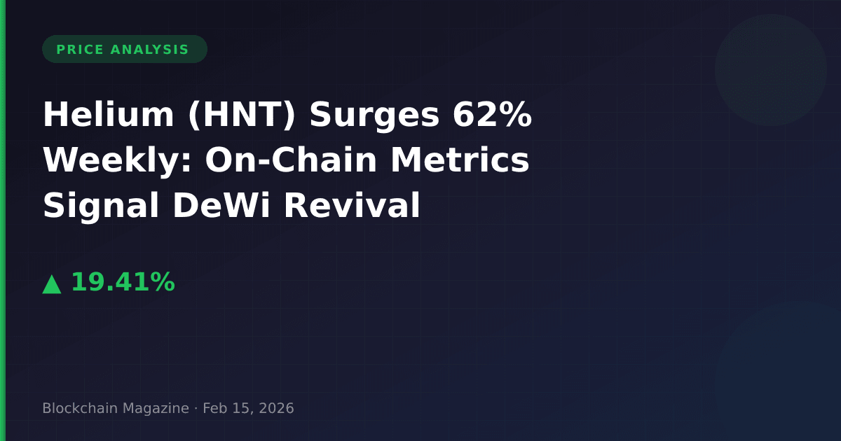 Helium (HNT) recorded a 19.4% price increase in the past 24 hours, reaching $1.34 and pushing its market cap to $248.8 million. More significantly, our analysis shows a 62% weekly gain that positions HNT among the top-performing mid-cap tokens in February 2026. This performance demands examination beyond surface-level price action.