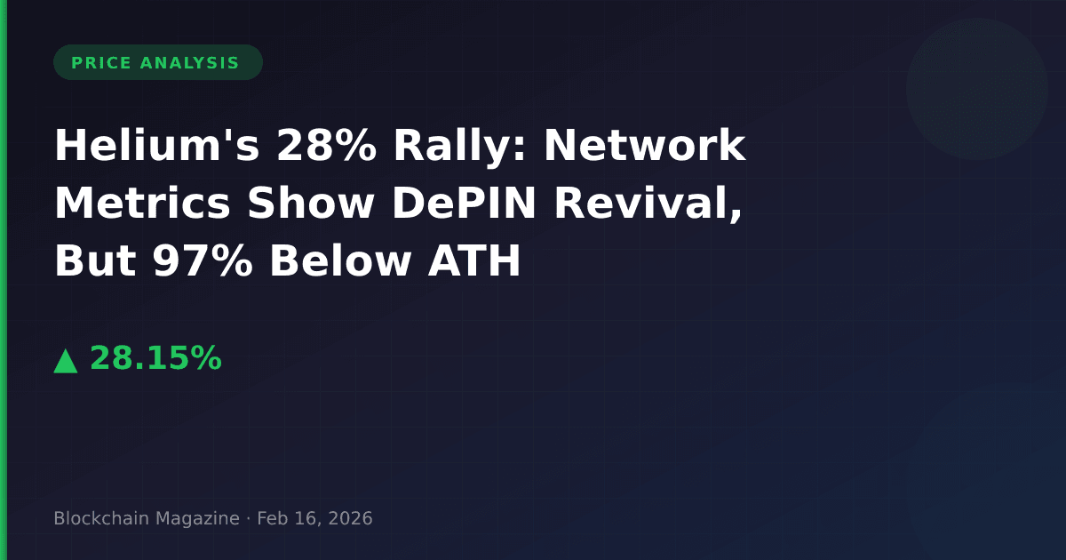 Helium (HNT) emerged as one of crypto’s top performers on February 16, 2026, surging 28.2% to $1.48 and pushing its market capitalization to $275 million. More remarkably, the decentralized physical infrastructure network (DePIN) token has now gained 80.8% over the past seven days, marking its strongest performance since the sector’s initial hype cycle in 2021-2022.