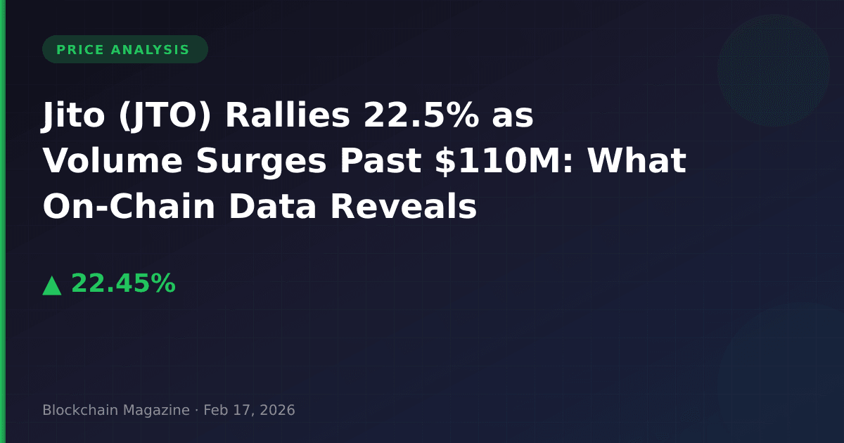 Jito’s governance token (JTO) has emerged as one of the strongest performers in the Solana ecosystem today, posting a 22.5% gain to reach $0.3298 as of February 17, 2026. What makes this rally particularly noteworthy isn’t just the double-digit percentage gain—it’s the extraordinary trading volume of $110.3 million against a market cap of just $144.6 million, representing a 76% volume-to-market-cap ratio that we rarely observe outside of major market catalysts.