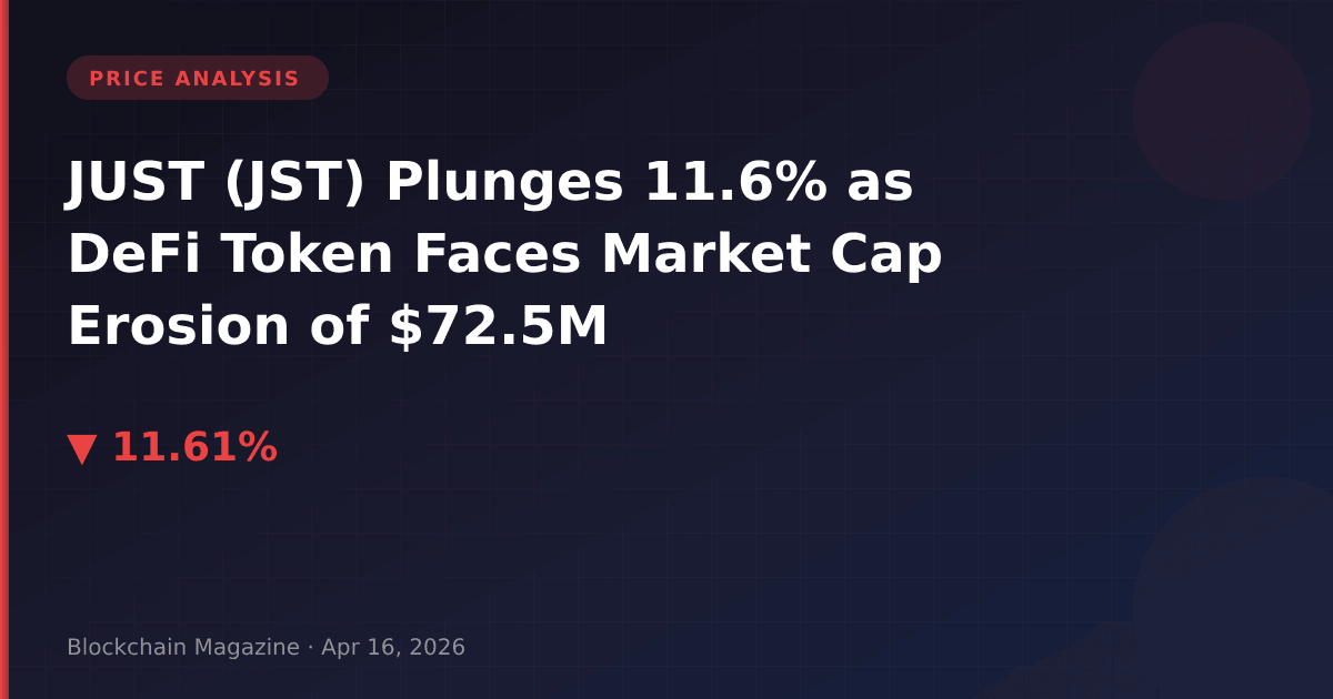JUST (JST), the governance token for TRON’s algorithmic stablecoin ecosystem, has experienced a severe 11.6% price contraction over the past 24 hours, dropping from an intraday high of $0.070923 to a current price of $0.062646. The decline represents one of the most significant single-day losses for the token in recent months and has erased approximately $72.5 million in market capitalization, bringing its total market cap down to $533.4 million.