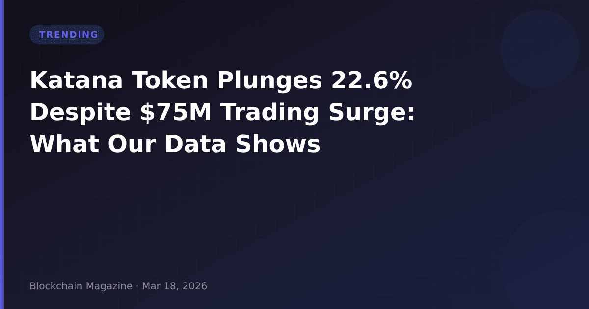 Katana (KAT) has emerged as one of today’s most-discussed cryptocurrencies, but not for reasons holders would celebrate. Our analysis reveals the token experienced a precipitous 22.6% decline over the past 24 hours, dropping to $0.01247 while simultaneously recording an extraordinary $75.5 million in trading volume—a figure that dwarfs its $29.4 million market capitalization by a ratio of 2.57:1.
