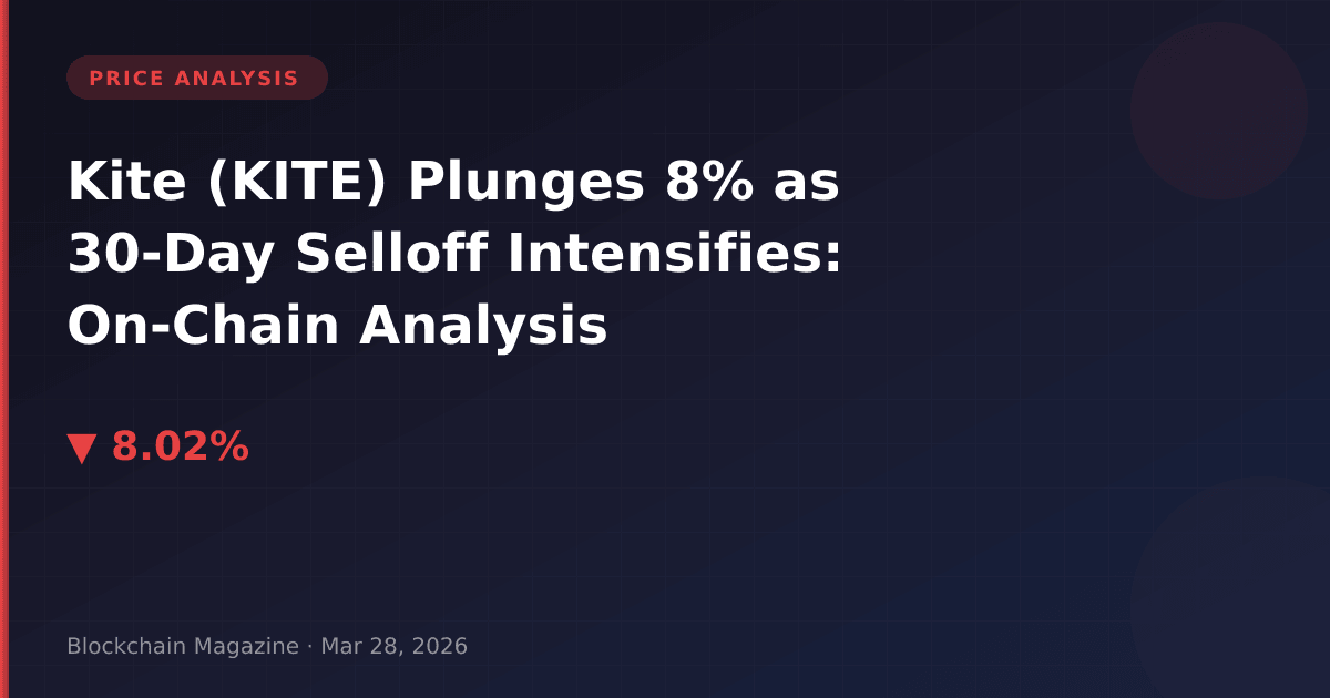 Kite (KITE) experienced an 8% price decline over the past 24 hours, dropping from $0.189902 to $0.173975 as of March 28, 2026. This latest pullback represents more than just a daily correction—it’s part of a sustained 32% monthly decline that has pushed the token 45.9% below its all-time high of $0.3197 recorded on March 6, 2026.