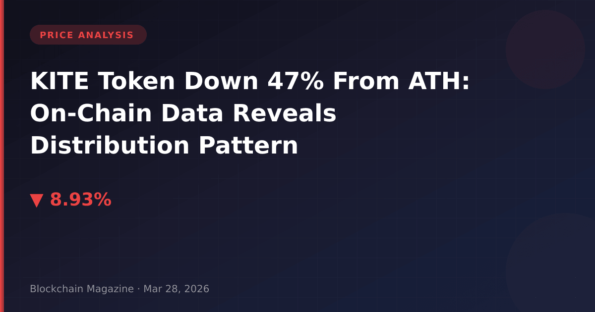 KITE token experienced an 8.9% decline over the past 24 hours, dropping to $0.168 and erasing nearly $30 million in market capitalization. While single-day corrections are commonplace in cryptocurrency markets, our analysis of the underlying data reveals a more concerning narrative: this isn’t just another routine pullback, but rather the continuation of a broader distribution pattern that has seen KITE shed 47% of its value since reaching an all-time high of $0.3197 on March 6, 2026.