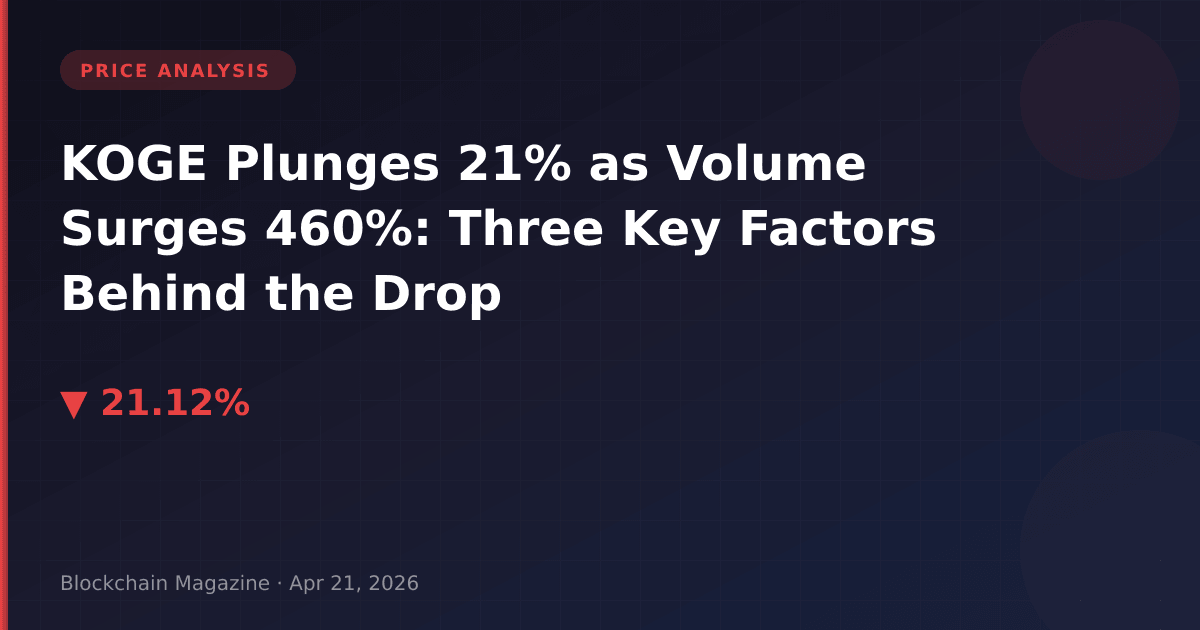 Our analysis of on-chain data reveals that KOGE’s trading volume surged to $5.86 million in the past 24 hours, representing approximately 4.6% of its $127.3 million market cap. To put this in perspective, this volume-to-market-cap ratio is significantly elevated compared to typical trading days, suggesting capitulation-level selling pressure rather than routine profit-taking.