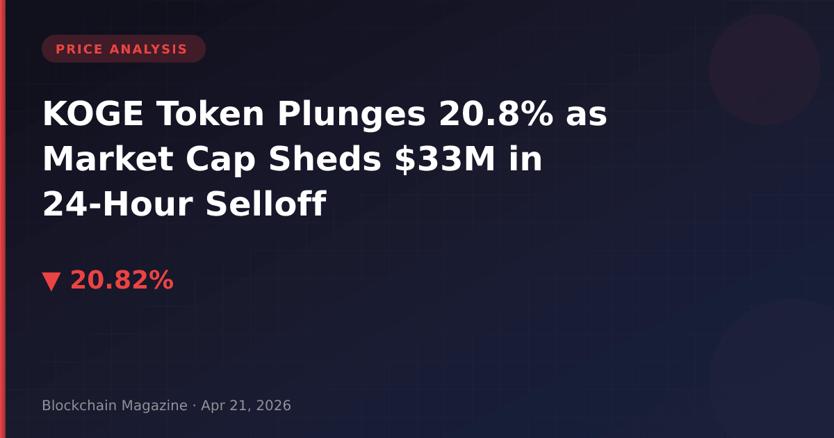 In one of the more significant single-day declines we’ve tracked in the mid-cap altcoin sector this month, KOGE (BNB48 Club Token) has shed 20.8% of its value over the past 24 hours, dropping from approximately $48 to $38.02. What makes this particularly noteworthy isn’t just the percentage decline—we’ve seen steeper drops across the crypto landscape—but rather the sustained pressure across multiple timeframes and the substantial market cap erosion of $33.19 million that accompanied it.