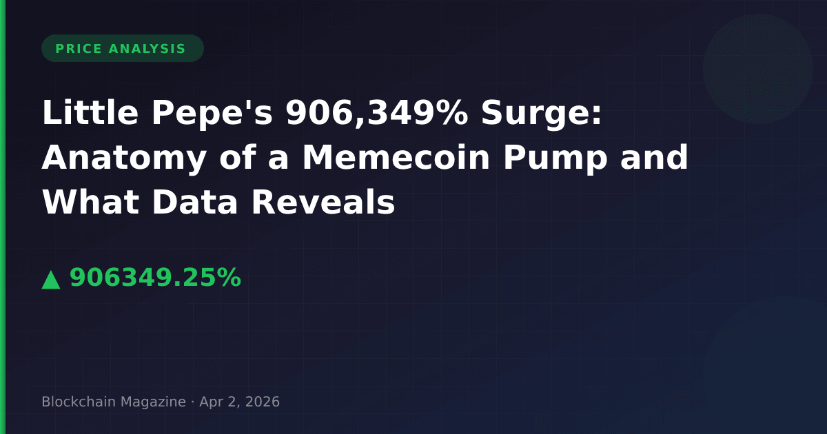 In what represents one of the most extreme price movements in cryptocurrency history, Little Pepe (LILPEPE) surged 906,349% in a single 24-hour period, catapulting the memecoin from obscurity to the #11 position by market capitalization. While the headline numbers appear spectacular, our analysis of the underlying data reveals several concerning patterns that investors must understand before considering exposure to this asset.