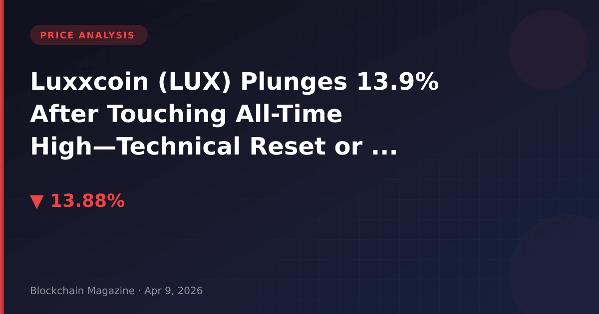 Luxxcoin (LUX) experienced a dramatic reversal on April 9, 2026, plummeting 13.9% to $0.001224 after touching an all-time high of $0.00145 earlier in the same session. The decline erased approximately $20.5 million in market capitalization within hours, raising critical questions about the sustainability of the token’s recent parabolic rally that saw it gain over 60% in the past week alone.