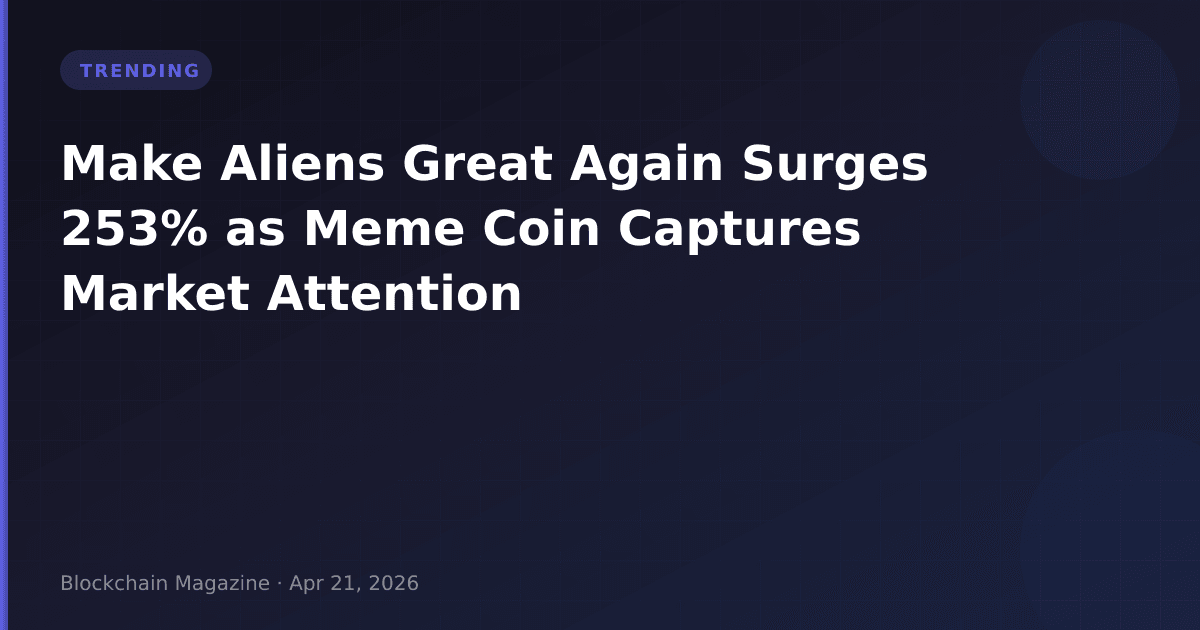 In what may be one of the more unusual market developments we’ve tracked this quarter, Make Aliens Great Again (MAGA) has experienced a staggering 253% price increase over the past 24 hours, currently trading at $0.01723. This dramatic surge has pushed the token to rank #953 on CoinGecko, with a market capitalization of $16.88 million and trading volume exceeding $5.8 million—representing a volume-to-market-cap ratio of 34%, which signals intense speculative activity.