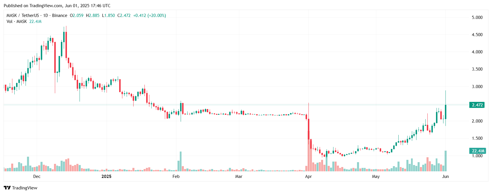 Mask token pricing moved and reacted to this news. It can be seen in the chart below.
