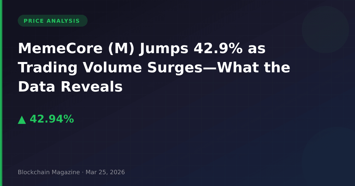 MemeCore (M) delivered one of the most significant single-day rallies in the memecoin sector during the past 24 hours, surging 42.9% to reach $2.45 as of March 25, 2026. What makes this price movement particularly noteworthy isn’t just the percentage gain—it’s the accompanying $1.29 billion increase in market capitalization coupled with relatively modest trading volume of $28.1 million. This volume-to-market-cap ratio suggests institutional accumulation rather than retail-driven euphoria, a pattern we rarely observe in memecoin price action.