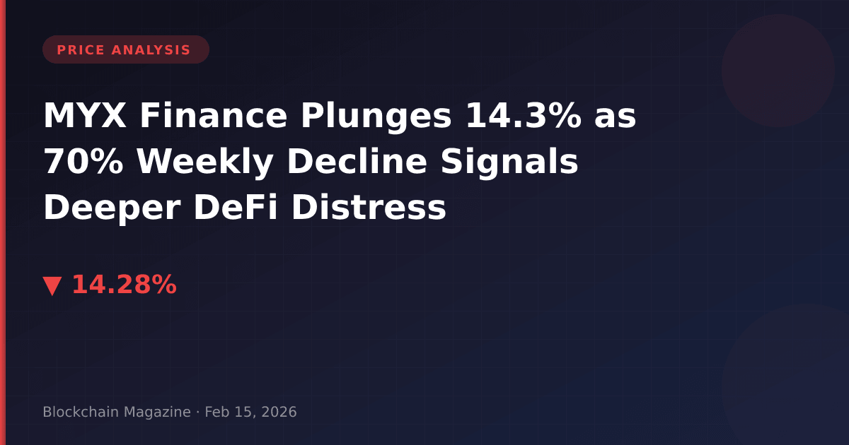 MYX Finance (MYX) has experienced a brutal 14.3% price collapse in the past 24 hours, trading at $1.98 as of February 15, 2026. More alarming than the single-day decline, however, is the protocol’s catastrophic 69.9% weekly drawdown and a staggering 64.7% monthly loss. Our analysis of on-chain metrics and market structure reveals this isn’t just another DeFi correction—it represents a fundamental crisis of confidence in the perpetual decentralized exchange protocol.