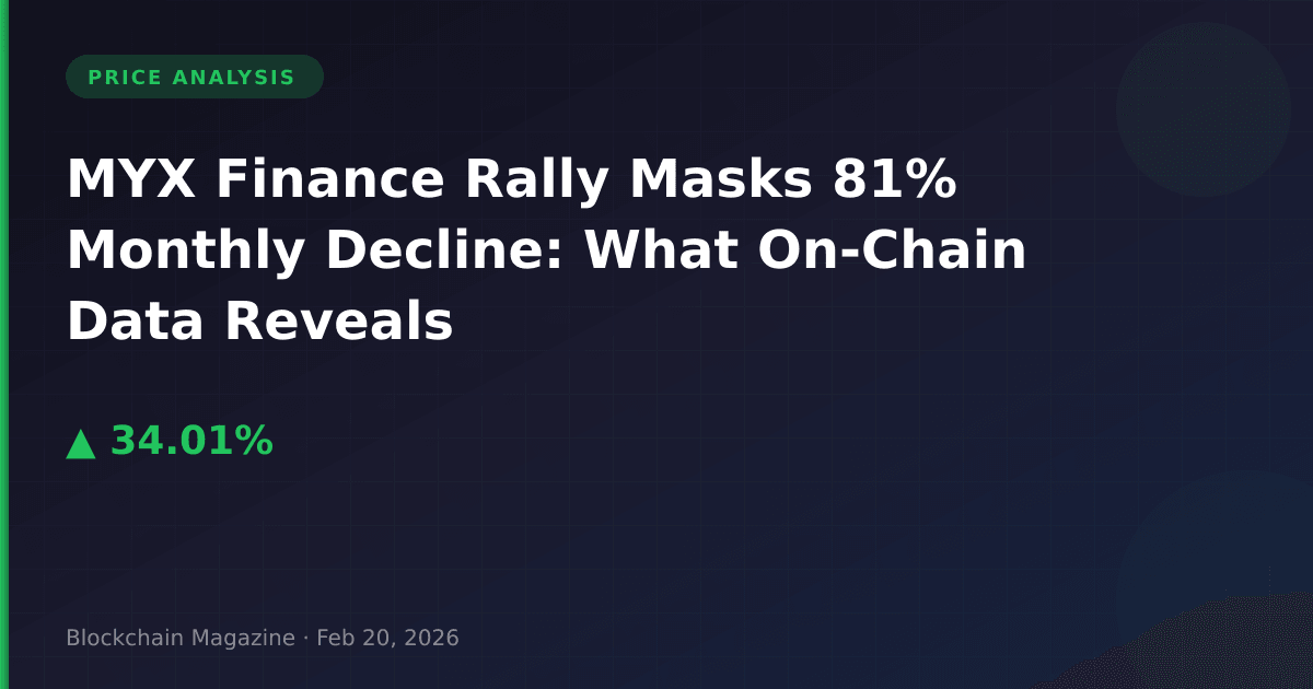 MYX Finance (MYX) captured market attention with a 34% price surge to $1.11 on February 20, 2026, but our data analysis reveals a more complex narrative than headline numbers suggest. Despite the impressive daily gain, the decentralized perpetual exchange token has declined 81.5% over the past 30 days and trades 94.2% below its September 2025 all-time high of $19.03.
