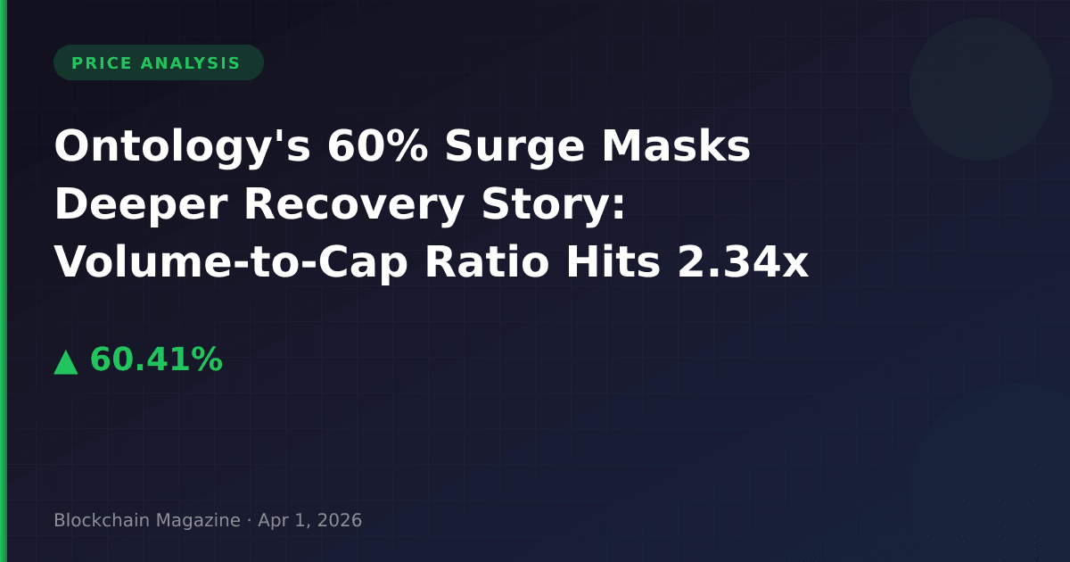 Ontology (ONT) recorded a 60.4% price increase in the past 24 hours, climbing from $0.0786 to $0.1322. While the headline figure captures attention, our analysis reveals the more significant story lies in the token’s extraordinary volume-to-market-cap ratio of 2.34x—a metric that warrants closer examination of what’s driving this recovery.
