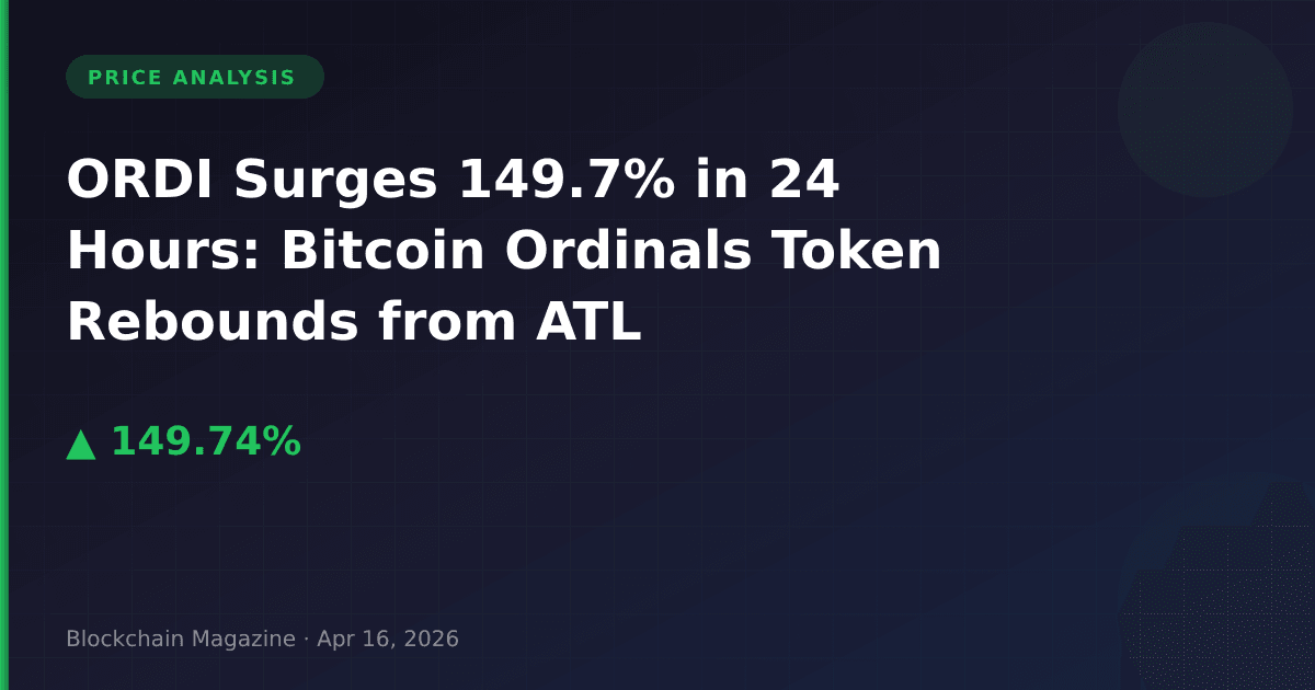 Our analysis begins with the most critical data point: ORDI was trading at its all-time low of $2.12 just 18 days ago on March 29, 2026. The current price represents a 207.9% recovery from that bottom, suggesting we may be witnessing a technical reversal rather than merely noise. However, context matters—ORDI remains down 93.16% from its all-time high of $95.52 reached in March 2024, creating a complex risk-reward dynamic for market participants.