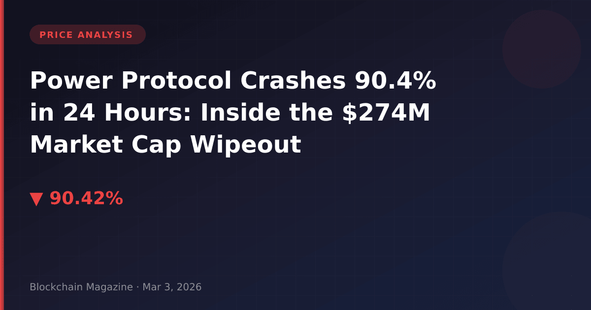 In one of the most dramatic price collapses we’ve tracked in Q1 2026, Power Protocol (POWER) shed 90.4% of its value in a 24-hour period, with its price falling from $2.32 to $0.22. The token’s market capitalization evaporated by $274 million, dropping from $469 million to $195 million—a 58.4% decline that ranks among the year’s most severe single-day drawdowns for mid-cap altcoins.