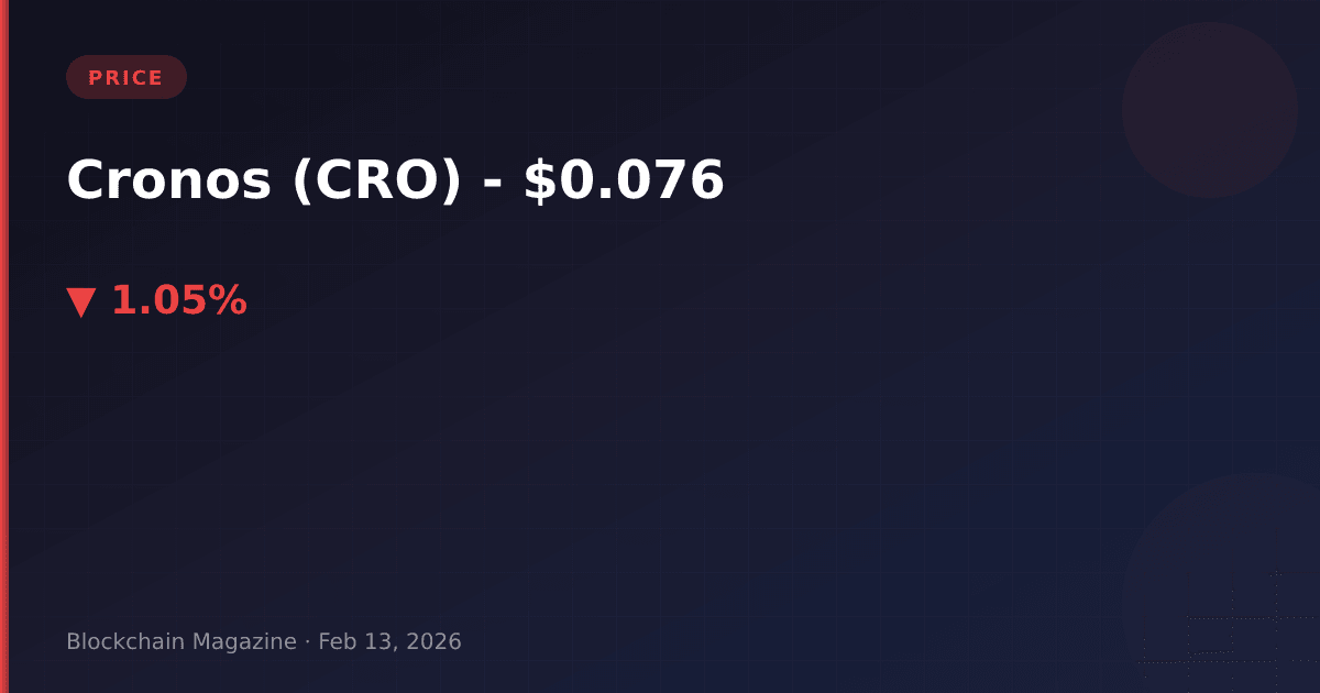 Cronos (CRO) is currently trading at $0.076195, representing a modest decline of 1.05% over the past 24 hours. Despite the short-term pullback, CRO has demonstrated resilience with a weekly gain of 2.47%, suggesting underlying support levels around the current price range. The monthly performance reveals a more challenging picture, with CRO down 26.37% over the past 30 days, reflecting broader market pressures and potential profit-taking after earlier gains in 2026.