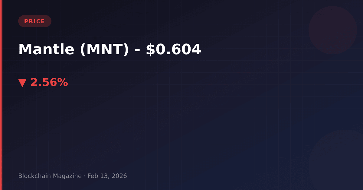 Mantle (MNT) is an Ethereum layer-2 scaling solution utilizing optimistic rollup technology, developed by BitDAO to provide faster and cheaper transactions. The current price of $0.604118 represents a -38.95% decline over 30 days, primarily driven by profit-taking after 2025 gains, increased competition in the layer-2 space, and broader cryptocurrency market consolidation in early 2026. The network continues developing its ecosystem despite short-term price volatility, with ongoing protocol integrations and infrastructure improvements.