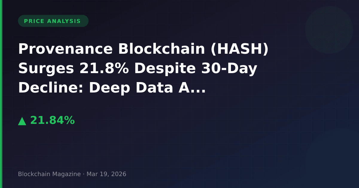 Provenance Blockchain (HASH) has captured market attention with a 21.8% price surge in the past 24 hours, climbing from $0.0118 to $0.0144 as of March 19, 2026. However, our deep-dive analysis reveals a critical disconnect between price movement and fundamental market indicators that demands closer scrutiny from investors and traders.