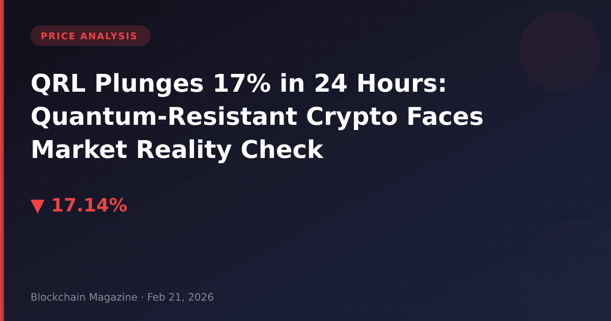 Quantum Resistant Ledger (QRL) experienced one of its steepest single-day declines this week, plummeting 17.1% to $1.48 as of February 21, 2026. What makes this selloff particularly noteworthy isn’t just the magnitude—it’s the context: while broader crypto markets have shown resilience in early 2026, QRL’s 30-day performance reveals a devastating 47.8% decline, suggesting deeper structural issues beyond typical market volatility.