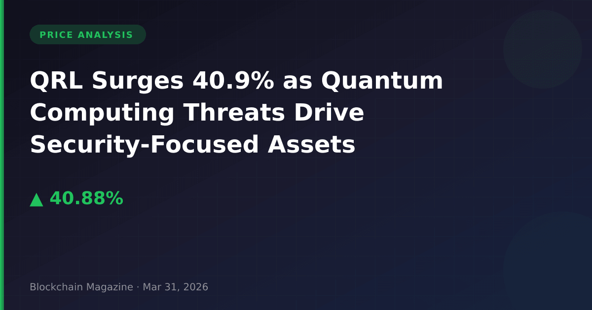 Quantum Resistant Ledger (QRL) delivered one of the market’s most impressive performances on March 31, 2026, with a 40.9% surge that pushed its price to $1.62. More significantly, this rally expanded the protocol’s market capitalization by $36.97 million to $127.24 million, marking a 41% increase in total network valuation within a single trading session.