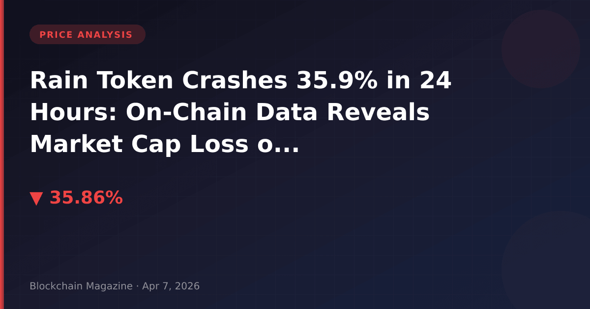 In what marks one of the steepest intraday declines among top-50 cryptocurrencies in Q2 2026, Rain (RAIN) plummeted 35.9% over the past 24 hours, shedding approximately $1.14 billion in market capitalization. Our analysis of on-chain metrics and trading patterns reveals this isn’t an isolated flash crash but rather a continuation of deteriorating sentiment that has plagued the token for weeks.