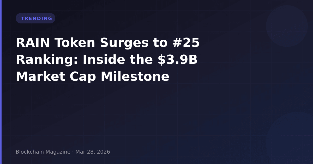 RAIN token has achieved an unprecedented milestone, breaking into the top 25 cryptocurrencies by market capitalization with a valuation of $3.94 billion. Our analysis of on-chain metrics and trading patterns reveals a complex picture behind this sudden prominence, with data suggesting both significant momentum and notable risk factors that investors must consider.