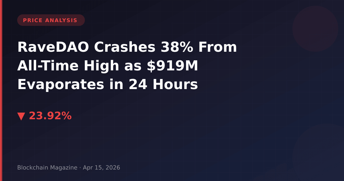 RaveDAO (RAVE) experienced one of the most volatile 24-hour periods in recent altcoin history, plummeting 23.9% to $12.01 after establishing an all-time high of $19.54 earlier today. The decline wiped out $919 million in market capitalization, raising urgent questions about the sustainability of a token that has surged over 4,260% in the past 30 days.