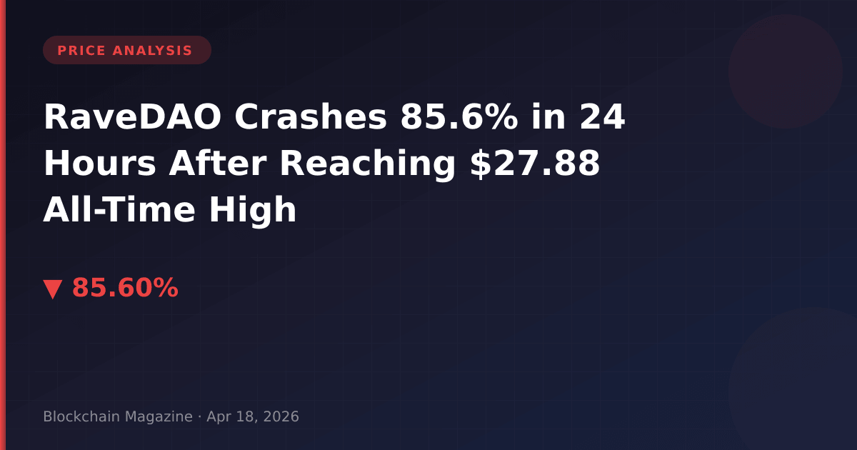 RaveDAO (RAVE) became the latest cautionary tale in cryptocurrency volatility, experiencing an 85.6% price collapse within a single 24-hour period on April 18, 2026. The token, which touched an all-time high of $27.88 at 01:40 UTC, plummeted to $3.14 by day’s end—a breathtaking destruction of value that erased $4.6 billion from its market capitalization.