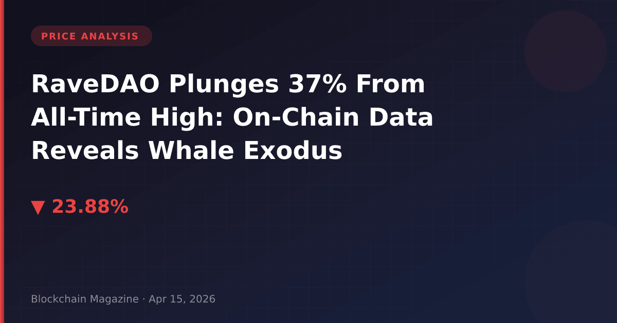 RaveDAO (RAVE) experienced one of the most violent intraday corrections we’ve observed in the current market cycle, plummeting 37.3% from its all-time high of $19.54 reached at 02:20 UTC on April 15, 2026. The token closed at $12.18, marking a 23.9% decline over the 24-hour period and erasing nearly $1 billion in market capitalization.