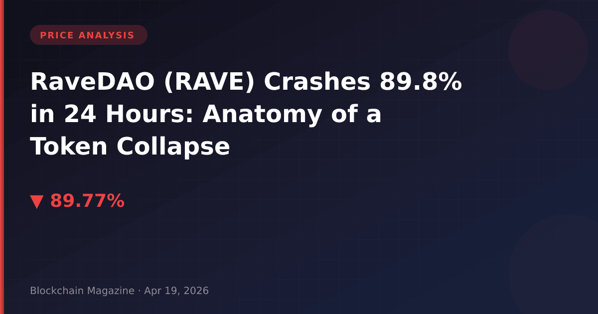 In a dramatic collapse that caught even seasoned crypto observers off-guard, RaveDAO (RAVE) experienced an 89.8% price decline within a 24-hour period ending April 19, 2026. The token, which reached an all-time high of $27.88 just 36 hours prior, now trades at $0.96—a staggering 96.6% drawdown from peak prices. We’ve analyzed the available data to understand what triggered this precipitous fall and what it reveals about emerging risks in the DAO token sector.