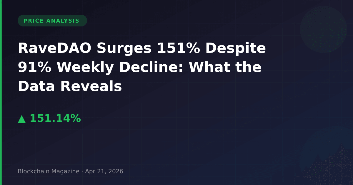 RaveDAO (RAVE) recorded a 151.1% price increase over the past 24 hours, climbing from $0.56 to $1.42 as of April 21, 2026. While this appears to be an exceptional performance, our analysis of the token's complete price history and on-chain metrics reveals a more complex—and concerning—narrative that investors must understand before making allocation decisions.