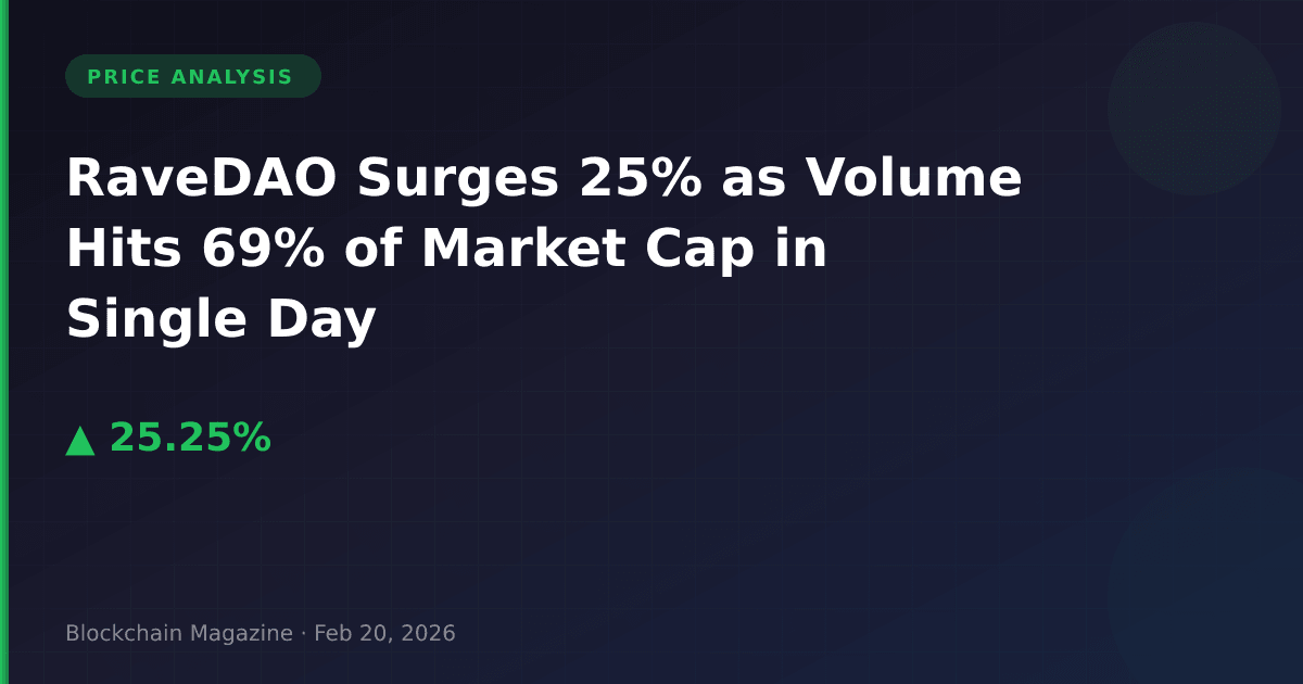 RaveDAO (RAVE) has captured market attention with a 25.2% surge in the past 24 hours, reaching $0.5356 as of February 20, 2026. However, the most striking metric isn’t the price movement itself—it’s the extraordinary trading volume of $86 million, representing approximately 69% of the token’s $125.5 million market cap. This volume-to-market-cap ratio suggests intense speculative activity that warrants closer examination.