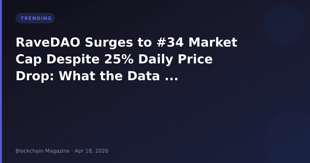 The RaveDAO situation underscores a broader challenge in crypto market analysis: headline metrics like market cap rankings can diverge significantly from actual liquidity and investment viability. As we continue monitoring RAVE’s trajectory through this volatility, the relationship between its maintained #34 ranking and persistent selling pressure will provide valuable data on how market structure impacts price discovery in 2026’s evolving DAO ecosystem.