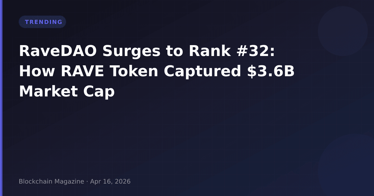 RaveDAO’s RAVE token has emerged as one of April 2026’s most surprising performers, securing the #32 position by market capitalization with $3.66 billion in valuation—a ranking that places it above several established layer-1 protocols and DeFi blue chips. Our analysis of on-chain metrics and trading data reveals this isn’t mere speculation, but rather a confluence of technical positioning, governance developments, and shifting DAO token valuations that warrant serious examination.