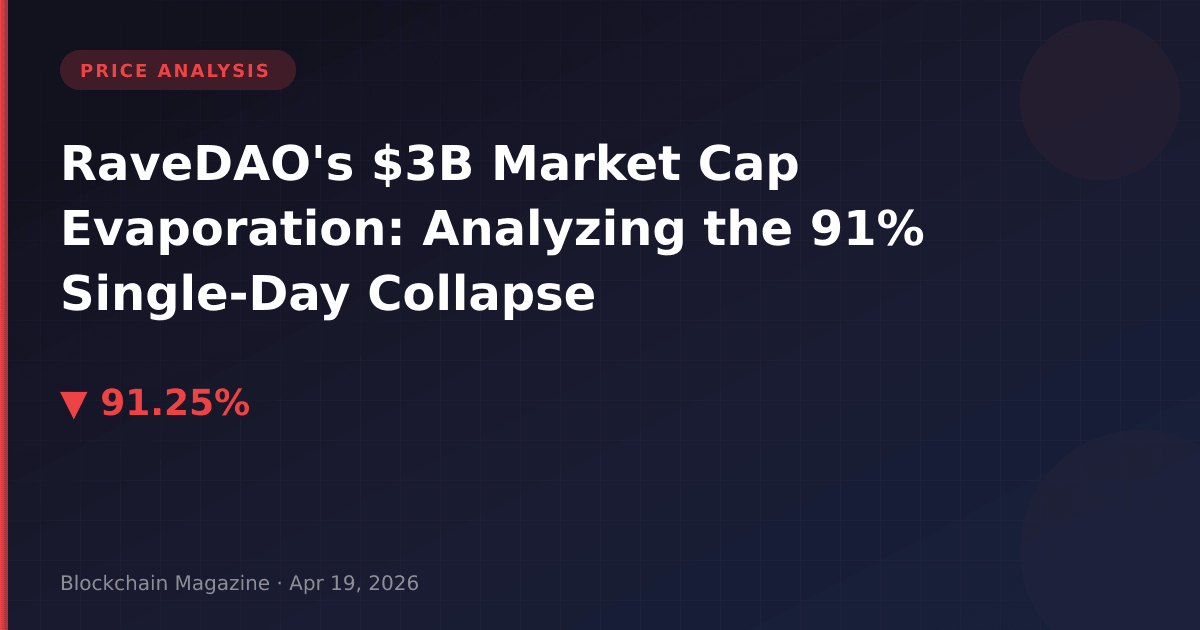 In what ranks among the most severe single-day devaluations in cryptocurrency history, RaveDAO (RAVE) experienced a catastrophic 91.3% price collapse on April 19, 2026, dropping from an intraday high of $14.29 to $1.17. This decline eliminated $3.07 billion in market capitalization within a 24-hour period—a destruction of value that surpasses the entire market cap of many established DeFi protocols.