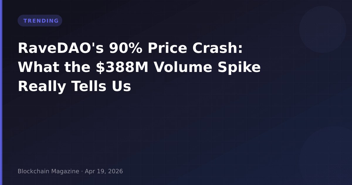RaveDAO (RAVE) has captured the crypto market’s attention for all the wrong reasons. The token experienced a devastating 90.54% price decline across all major trading pairs in the past 24 hours, dropping to $0.94 as of April 19, 2026. Yet the most intriguing aspect isn’t the crash itself—it’s the staggering $388 million in trading volume that accompanied it, representing a volume-to-market-cap ratio of 167%.