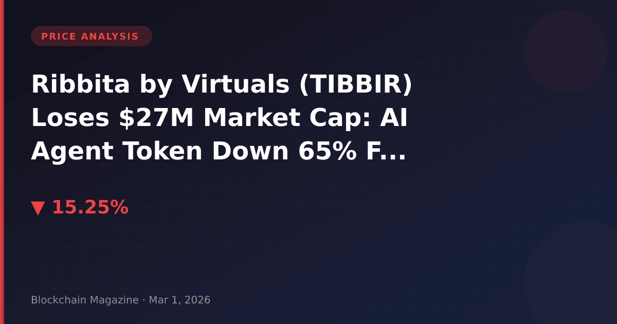 Ribbita by Virtuals (TIBBIR) shed 15.2% of its value in the past 24 hours, trading at $0.154 as of March 1, 2026, representing a striking 65% drawdown from its all-time high of $0.44 reached in October 2025. The decline wiped out $27.4 million in market capitalization, bringing the token’s total market cap to $154.2 million and raising critical questions about the sustainability of AI agent token valuations in early 2026.