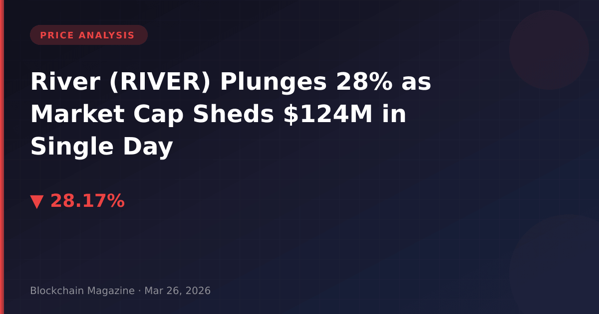 River (RIVER) has registered one of the sharpest single-day declines in the mid-cap crypto space, dropping 28.2% to $16.02 as of March 26, 2026. The sell-off erased $124 million in market capitalization within 24 hours, reducing the project’s total market cap to $313.6 million and pushing it to rank #127 globally. More concerning for investors: the token has now retraced 81.9% from its $87.73 all-time high reached just two months ago on January 26, 2026.