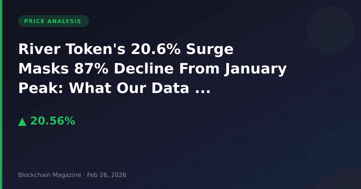 River (RIVER) captured market attention with a 20.6% price increase over the past 24 hours, climbing to $11.15 as of February 26, 2026. However, our data analysis reveals a more complex narrative than this headline figure suggests. The token remains down 87.2% from its all-time high of $87.73 reached just one month ago on January 26, 2026, raising critical questions about whether this represents a genuine reversal or a technical bounce within a larger downtrend.